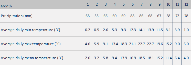 Climate data for the reference climate normal period (1961-1990), and diagrams for the climate normal period and the last three decades (1981-2010) at our Ludger-Mintrop urban site.